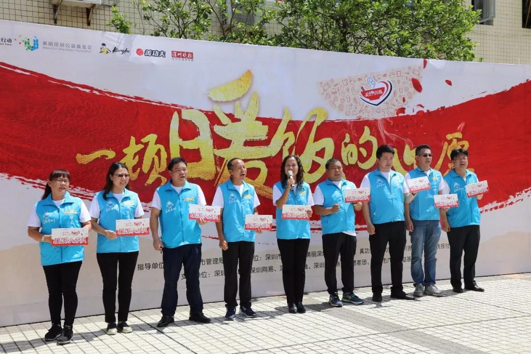 朱总在内的暖饭派送大使在现场亲自把一份份暖心的热饭送到每一位环卫工的手里,并一一问候,感谢她们辛勤的劳动,感谢她们为美丽深圳所作出的贡献。